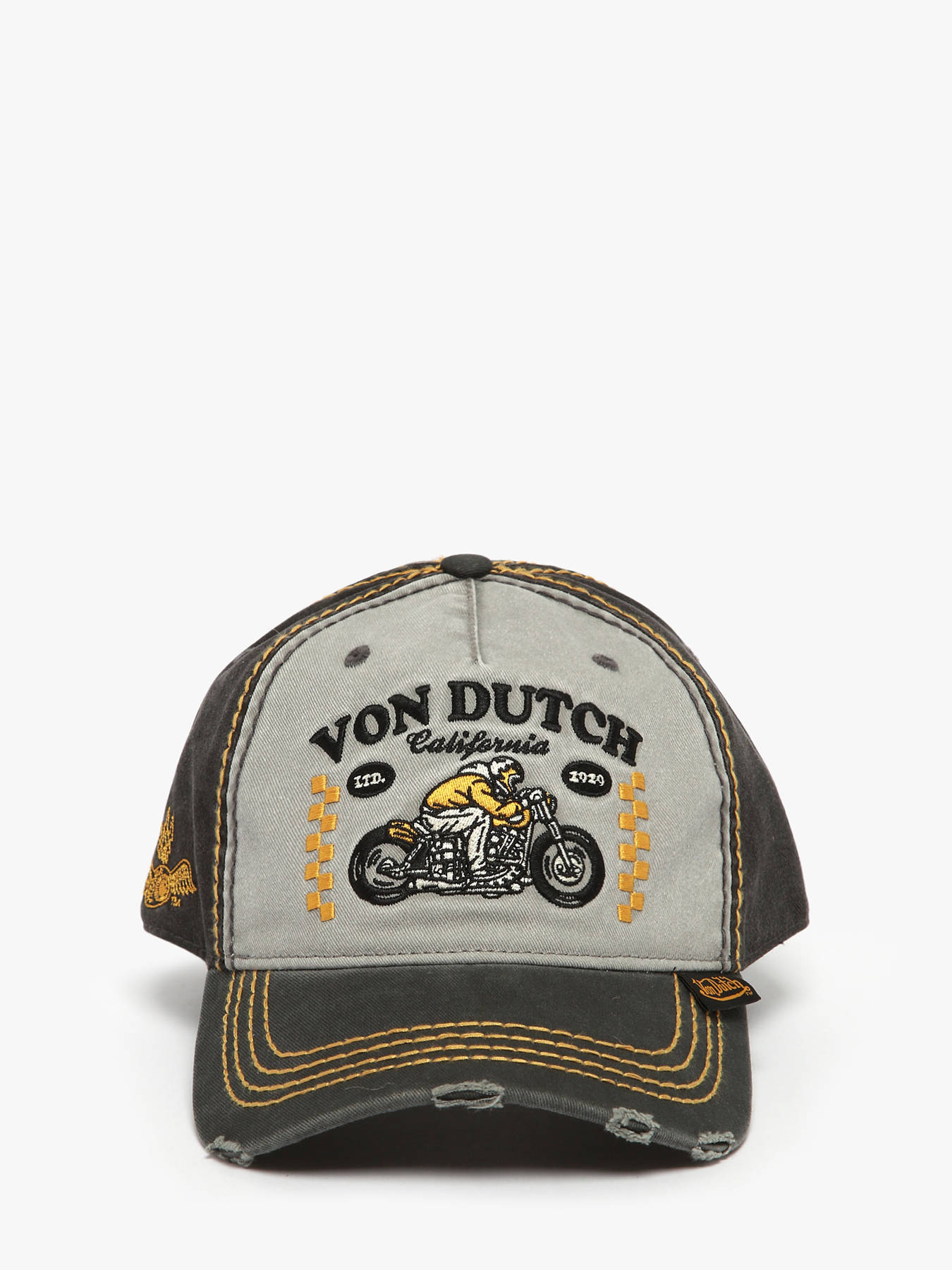 Authentic and full of character, the Von Dutch Distressed Effect cap captures vintage charm with a laid-back attitude. Crafted from soft yet durable cotton, it features a worn-out finish that gives it a distinctive, lived-in look. The curved visor and adjustable back strap ensure a comfortable, personalized fit, while its lightweight design of only 0.1 kg makes it ideal for everyday wear. Effortlessly versatile, it pairs perfectly with jeans, casual outfits, or edgy streetwear. Staying true to Von Dutch’s rebellious spirit, this cap is made for those who embrace their individuality and appreciate timeless authenticity with a touch of attitude.