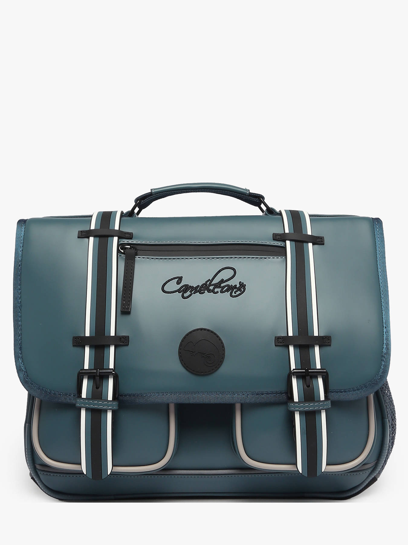 38 cm - 18 liters - 1.07 kg ~ 38 cm primary schoolbag by Cameleon from the Vintage North line. This schoolbag is perfect for first and second grade. We love the beautiful vintage touches with its finishings and its zipped pocket on the flap! It is divided into two large compartments for all your school stuff. Functional, it has a small zipped pocket, a special ruler compartment and two zipped pockets on the front of the schoolbag. A little extra, this schoolbag has a name tag. Ergonomic, the handle and the bottom of the schoolbag are reinforced. Very comfortable, the back and shoulder straps are padded. This schoolbag is waterproof. For safety, there are reflective strips around the child's schoolbag. A little extra, a ruler is offered!